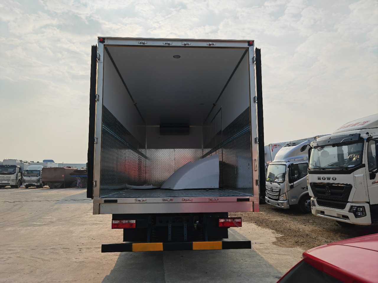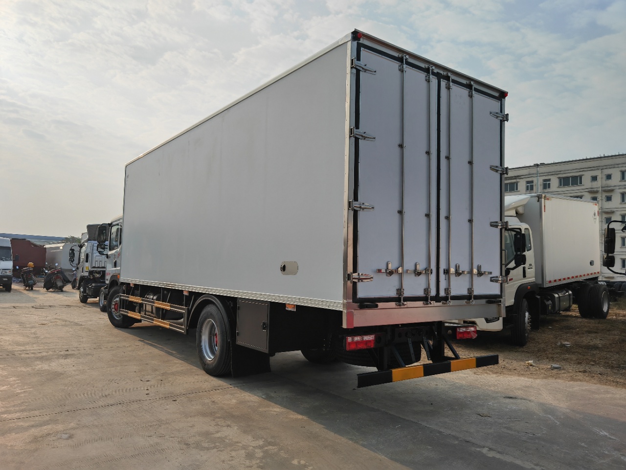東風D9帶進口機組醫療廢物轉運車廂體材質采用外玻璃鋼,內不銹鋼,中間為高密度保溫擠塑板,后雙開門,底板為加厚不銹鋼,門邊條采用迷宮式橡膠密封條,鋁合金型材包邊,不銹鋼包角,不銹鋼門鎖門框及合頁。副駕駛室側開對開門,門中門,紫外線殺毒燈,噴淋裝置,配污水箱、凈水箱等。選裝帶爬梯及工具箱。選裝國產或進口制冷機組。冷王T880制冷機組。