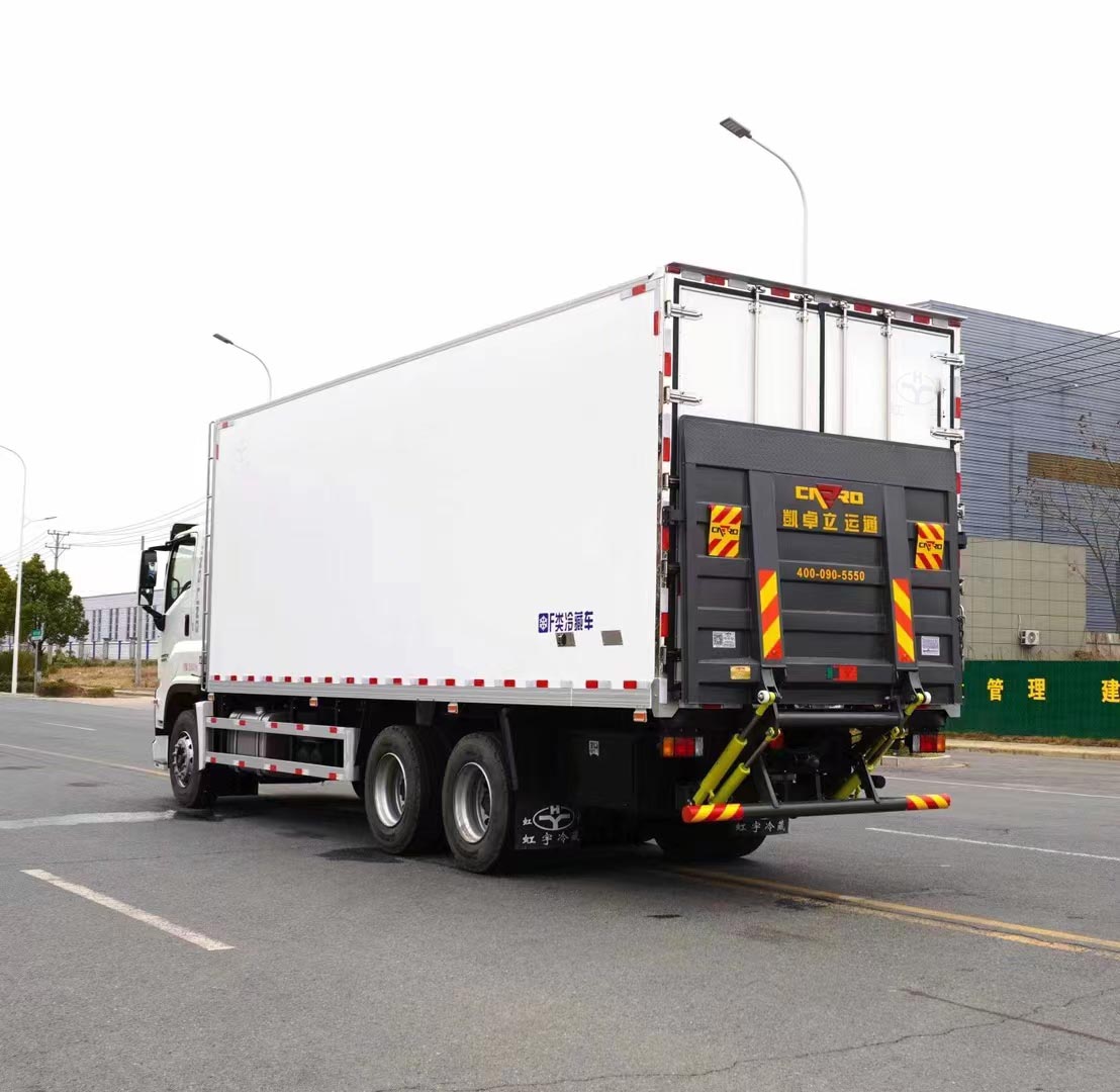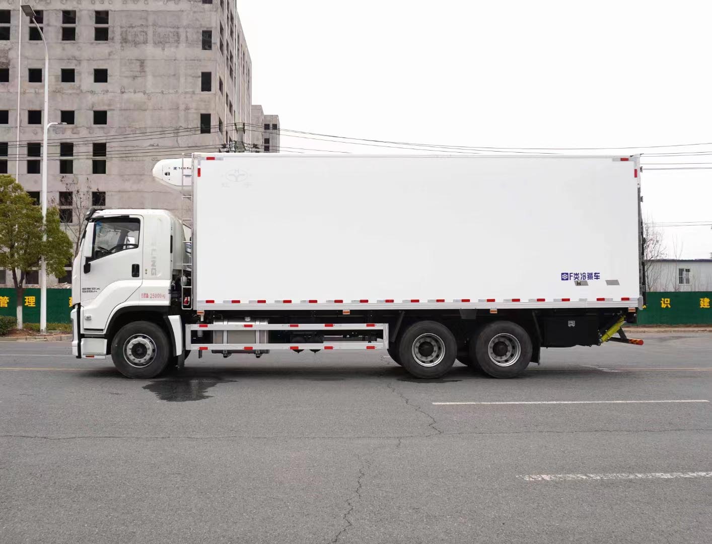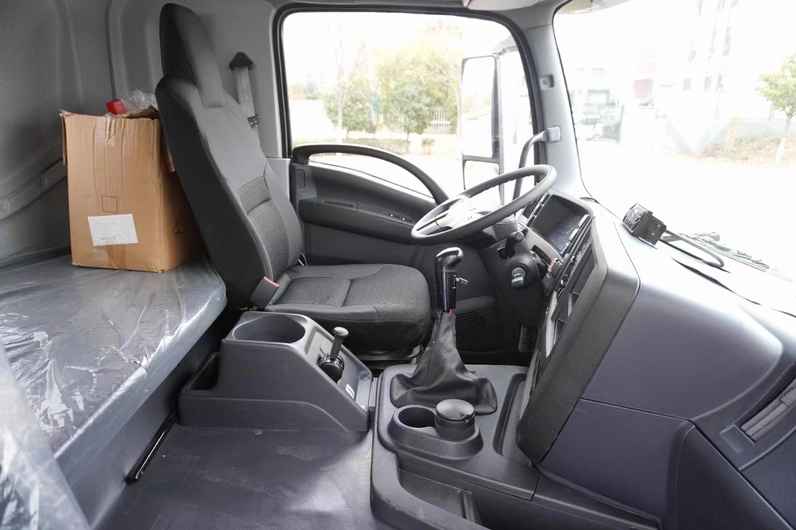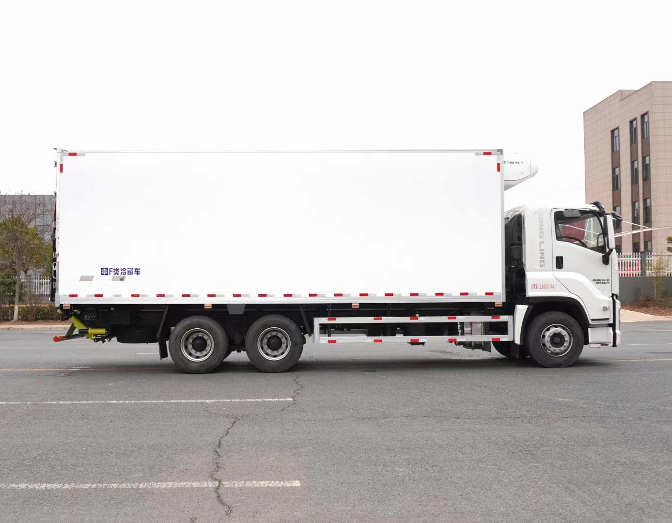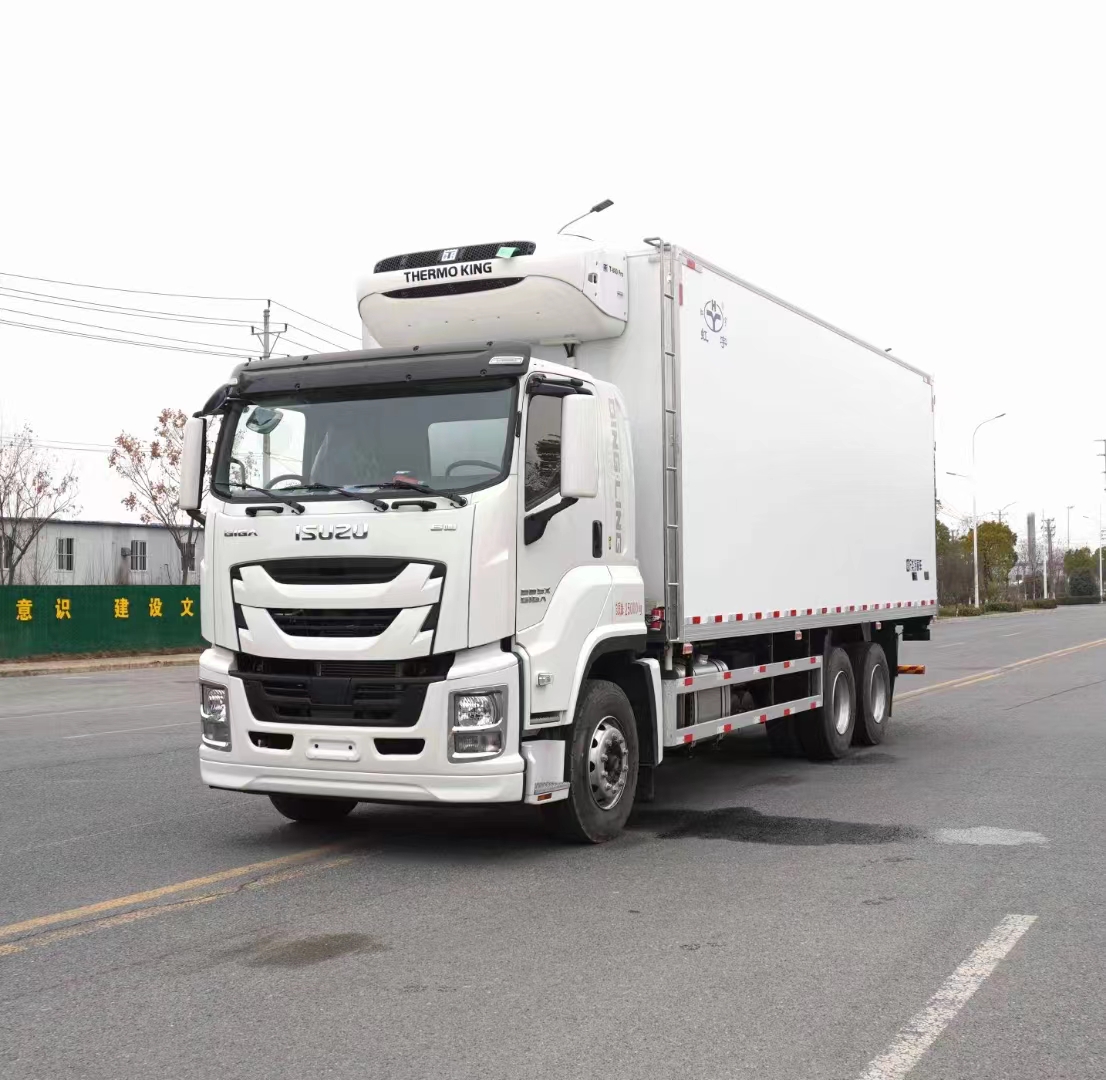 慶鈴五十鈴后雙橋國(guó)六冷藏車采用的是新款五十鈴巨咖5X駕駛室(平頭一排半(2人座駕駛室),五十鈴300馬力發(fā)動(dòng)機(jī)(6HK1-TCG60),采用的是氣懸駕駛室及氣懸座椅、冷暖空調(diào)、液壓方向助力、離合及剎車助力、定速巡航、多功能液晶儀表盤(pán)、電加熱后視鏡),五十鈴6HK1-TCG60發(fā)動(dòng)機(jī)(國(guó)六B排放標(biāo)準(zhǔn)、馬力300HP、扭矩1000N.m 、排量7.79L),法士特9JS119TA 變速箱(具有直接檔和爬坡檔的9檔式、帶同步器、手動(dòng)式),車橋(前盤(pán)后鼓式剎車、后橋速比4.555),驅(qū)動(dòng)方式:6×4(中后橋帶中央差速鎖),制動(dòng)系統(tǒng):斷氣剎、ABS、排氣制動(dòng),燃油箱(鋁合金400升),輪胎295/80R22.5。