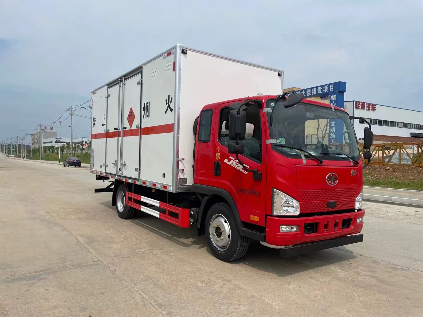 解放J6F排半5米2紅色車頭白色箱體危險品車采用的是經典駕駛室,寬敞3人座,時尚的中網給人眼前一亮的感覺,可選濰柴160馬力發動機或大柴180馬力,帶中控鎖、電動門窗、原廠空調,選擇該類車型的車主主要看中的是車的箱體,能夠滿足排半的情況下還可以做到廂長5米2,相比以往做4.78米的廂長多30公分,在同類車型中更有優勢。