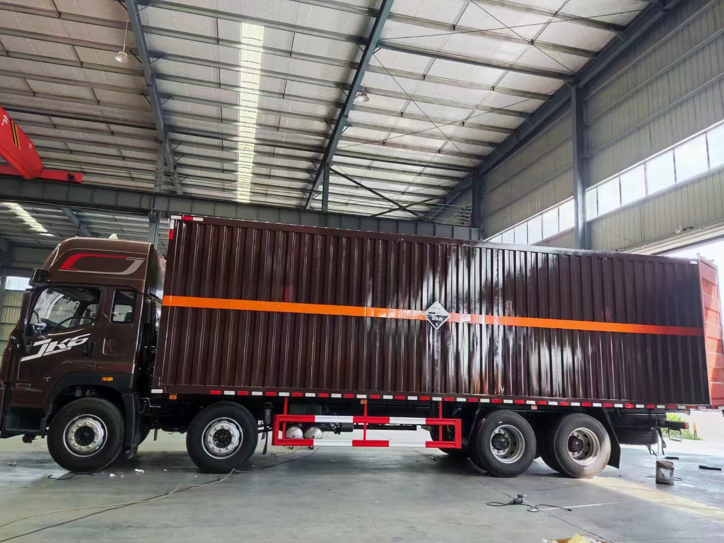解放高頂雙臥前四后八腐蝕類廂式危險品車總質量32T,額定載質量20T,箱體尺寸:9650×2450/2400/2380×2600/2400,與其他車型相比的話,該車采用大柴350馬力發動機,一汽10檔變速箱,1900+4500+1350mm軸距,長軸距車型不用擔心后懸長車輛翹頭的問題。295/80R22.5輪胎,橫截面大車輛承載力強,帶取力器,前盤后楔制動器,板簧3/3/2+-/2+-,2氣囊,帶進口ECAS,電控氣囊懸掛,二軸帶橫向穩定桿,空氣彈簧座椅,帶中間座椅,電動門窗,電動后視鏡,電動舉升、爆胎應急裝置、有前碰撞預警+有車道偏離系統、T-BOX在北方很多人喜歡用解放的車型,主要在于車輛的使用性能更高端,配置更齊全。為了讓車主能享受到經濟實惠,又能讓車輛耐用。該車全部采用的是烤漆噴粉工藝,車輛油漆不會容易風化,外觀看起來更協調,尤其是棕色,外觀很低調,車輛臟不容易看出來。