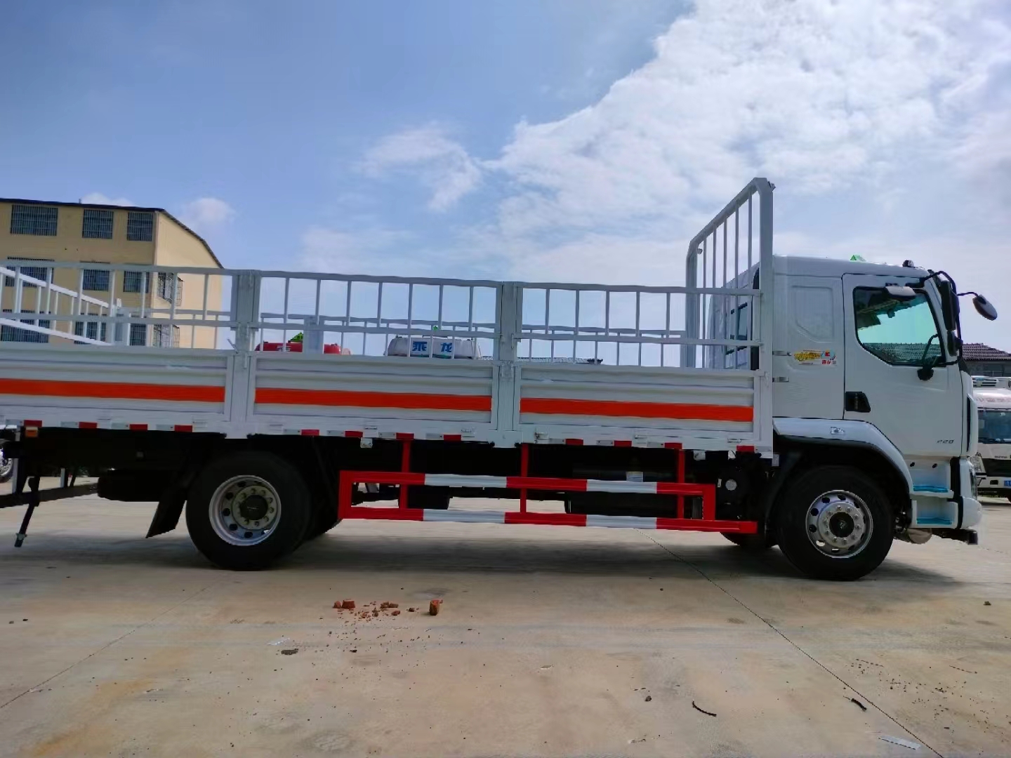 柳汽乘龍6.72米國六氣瓶車軸距5100mm,發動機YCS04220-61A,變速箱8JS85E-C,離合Ф395,前橋3.6T盤式,后橋9T/4.111,板簧2/-,車架264(6),280L油箱,國產方向機,275/80R22.5,機械半浮式駕駛室懸置、液壓機械翻轉、針織氣囊司機座椅、LCD液晶儀表、MP3+收音機、空調、PU普通方向盤、定速巡航系統、電控硅油風扇、EBS、TPMS、LDWS、FCW、ESC、AEBS、遙控中控鎖、限速80Km/h、導靜電橡膠拖地帶、駕駛室電源總開關、全新內飾、車載終端(行駛記錄儀+兼容北斗GPS)、右轉提示音響、前置后處理、前輪防爆胎裝置、盤式前橋、排氣火花熄滅器、危險品運輸頂燈。