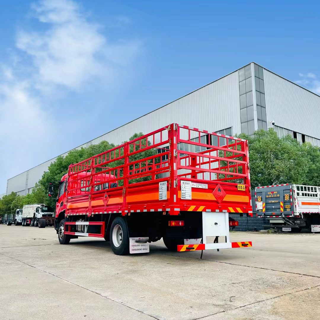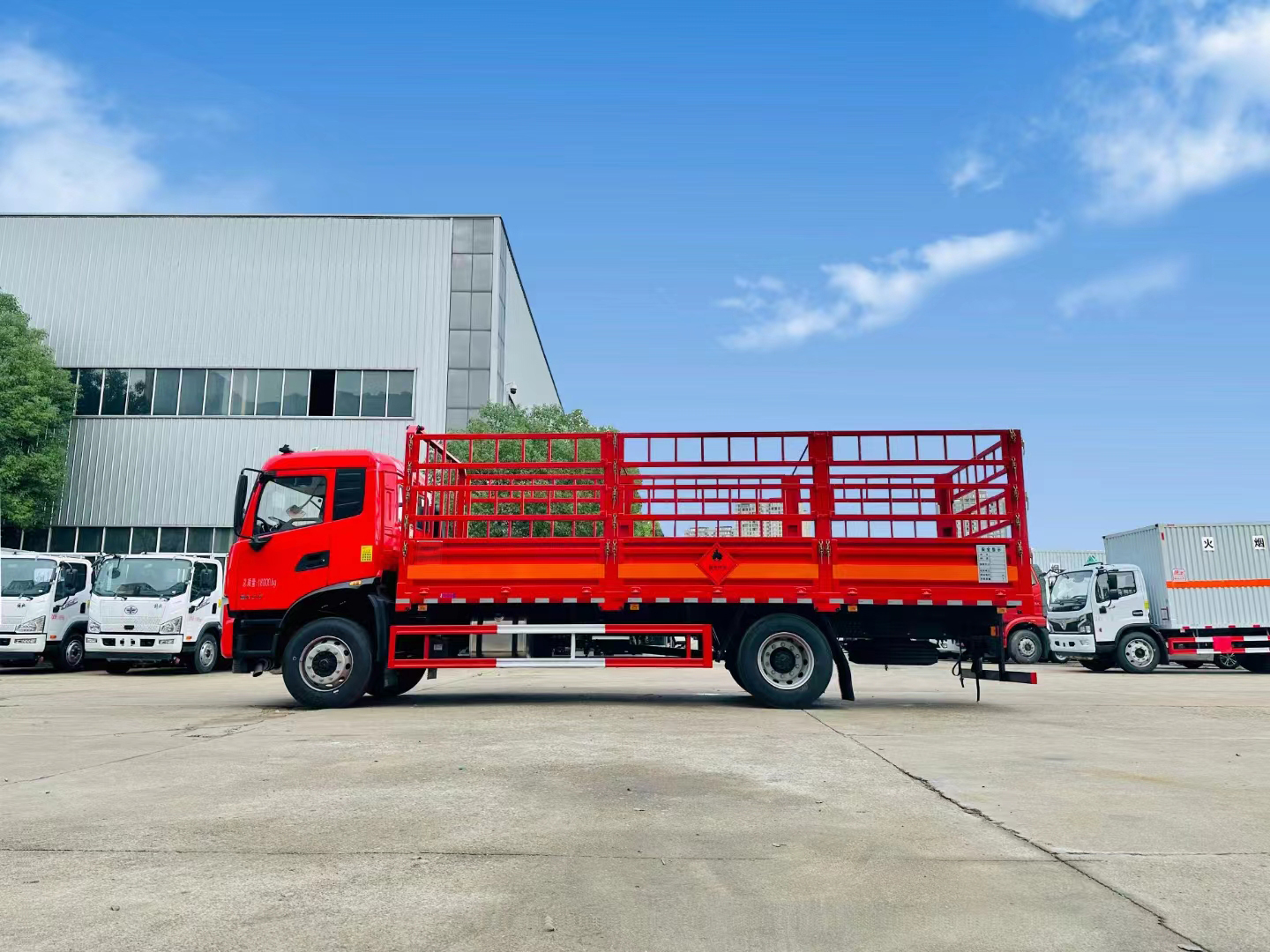 裝液化氣鋼瓶、乙炔甲烷瓶、不燃氣體鋼瓶等都屬于二類危險品,該類車型如果需要長途運輸,就需要欄板高,防止氣瓶倒下來。今天為您推薦的是東風天錦10噸三層氣瓶車,以下是詳細配置介紹: