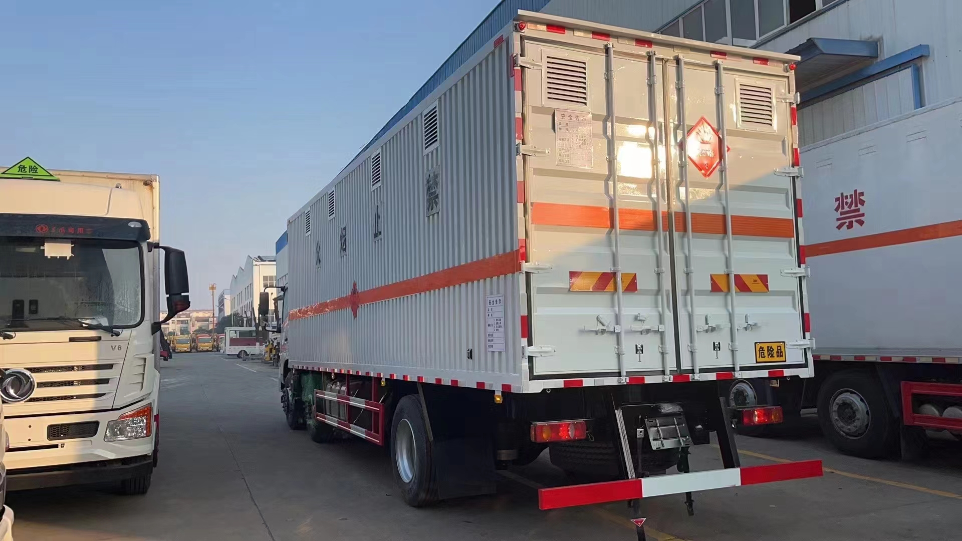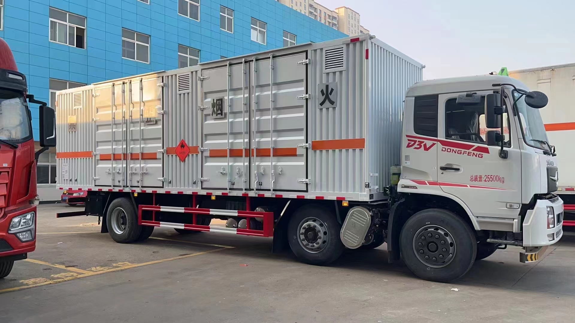 東風DV3國六三軸瓦楞板危險品車裝載噸位可達15噸,尾部可加裝液壓尾板,箱體可以多選,讓您使用更省心!