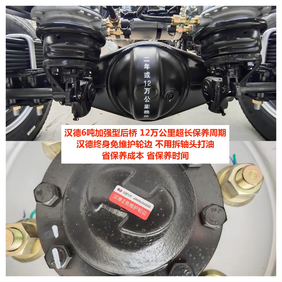 漢德6噸后橋 2年12萬公里長換油周期 終生免維護輪端(不用拆軸頭打黃油 省時省成本),選用的1900mm中體最寬駕駛室 液晶儀表、多功能方向盤帶定速巡航、電控空調帶一鍵除濕、取力器開關、遠程油門開關。