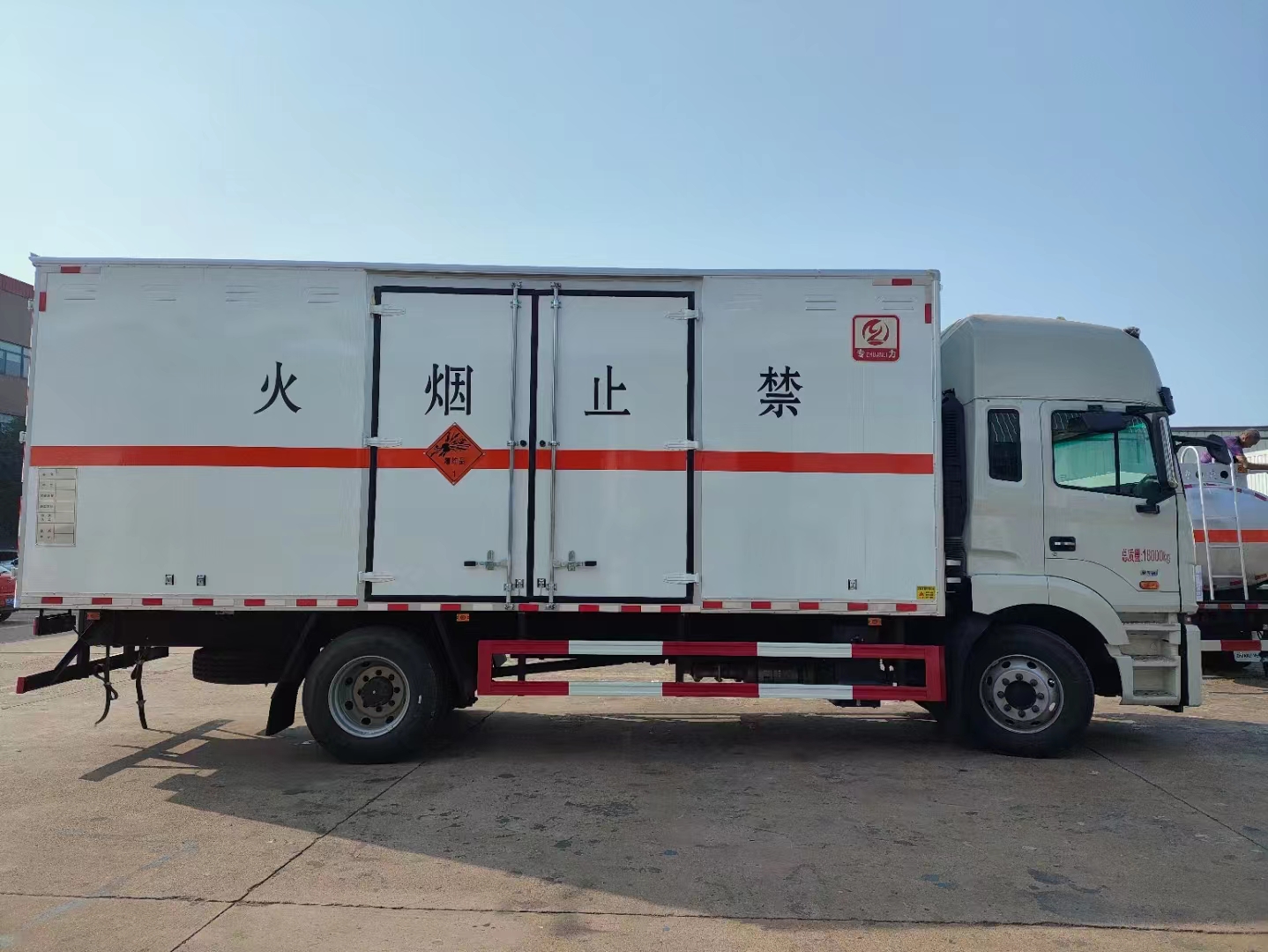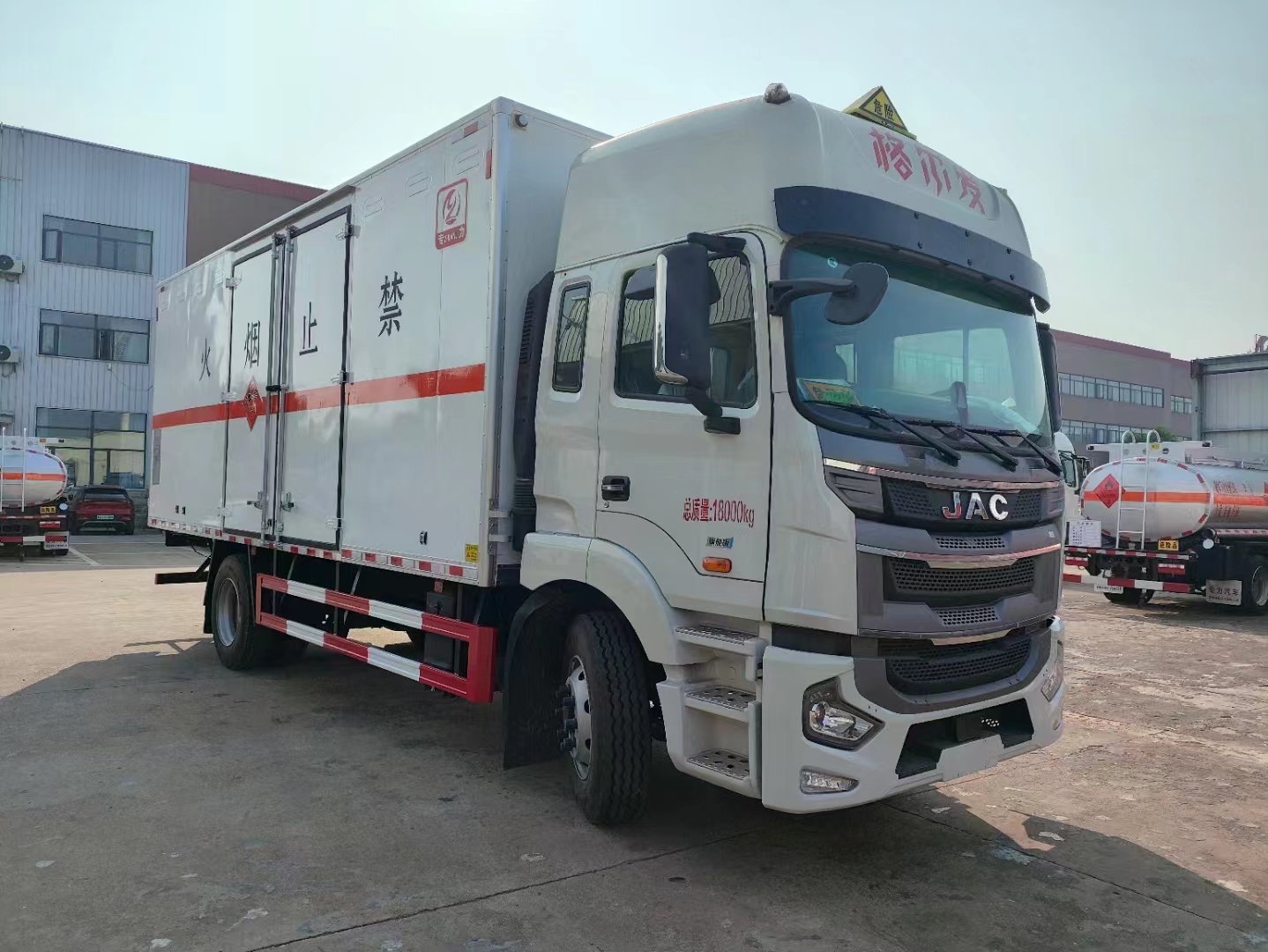 江淮格爾發(fā)6米8國六化學(xué)物品運輸車外板采用冷軋鋼板一次性沖壓成型的百葉窗,內(nèi)飾為導(dǎo)電性能良好的鋁板有透氣孔,內(nèi)襯矩形管骨架牢靠穩(wěn)定,骨架內(nèi)部填充為透氣防潮阻燃的擠塑板。廂體外部四周鋁合金型材包邊,底板和車廂前下部鋪橡膠皮,后門雙開,右側(cè)選裝側(cè)開門,內(nèi)部安裝固定貨物的臥環(huán)或腰欄,安裝煙霧報警器、防盜感應(yīng)器。車身附件靜電接地帶、滅火器、防火罩、危險品三角燈、橙色反光帶、CCC反射器、菱形標(biāo)志牌、危險品牌、安全告示齊全。