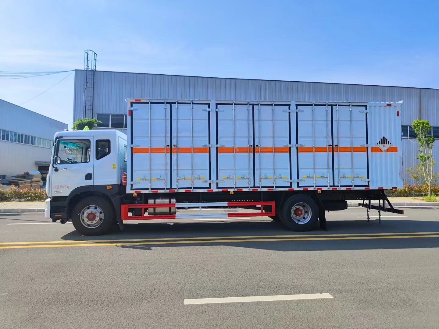 東風D9國六帶左右開門雜項危險品車具有機動靈活、操作方便、效率高、運輸量大、雨中無濕貨、充分利用空間、安全可靠等優點。選用的是東風D9危險品車底盤,寬體3人座,可選4缸康明斯220馬力和6缸230馬力發動機,定制的是專用冷軋板折彎而成的瓦楞板,可選帶左右開門,裝貨更方便,該車可運輸1類到9類危險品。該車以獨特的造型、優化的結構、更強的承載能力,完美體現了底盤扎實、鈑金扎實、承載能力強、質量可靠的傳統優勢。在品質上提升真實價值,讓您在致富路上跑得更快。
