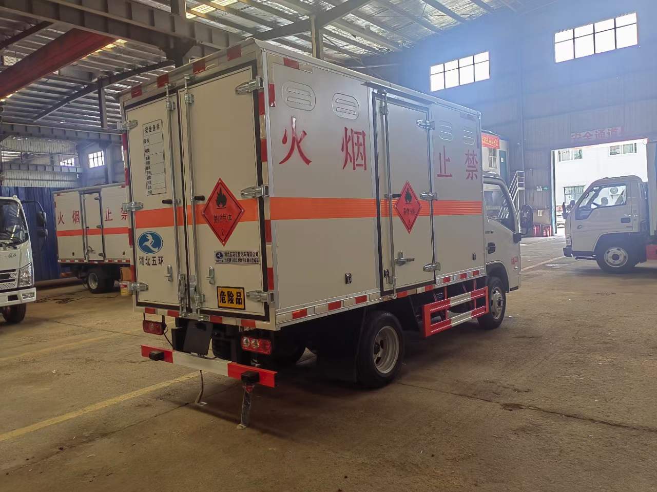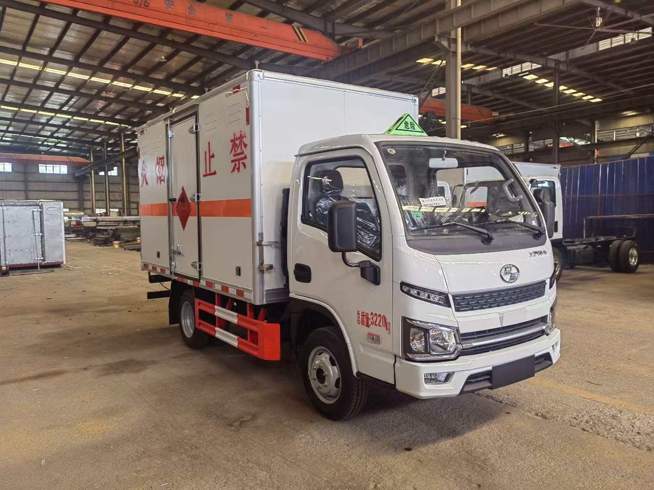 穿梭于市區(qū),很多用戶選用的是汽油車,因為藍牌車型才讓準入,汽油車很多地方是不用辦通行證的。所以小型汽油危險品車在市區(qū)更受歡迎。為了滿足裝貨方便的要求,一款能帶尾板的要求更貼近實際使用要求。該車采用上汽躍進S80駕駛室,柳州五菱123馬力,3噸后橋,帶中控鎖,電動門窗,經(jīng)測試滿載四五噸貨沒得問題。最主要:1.6排量(解決汽油機動力不足)。在北方地區(qū),柴油車在冬季不好著火,所以汽油車相對更合適。