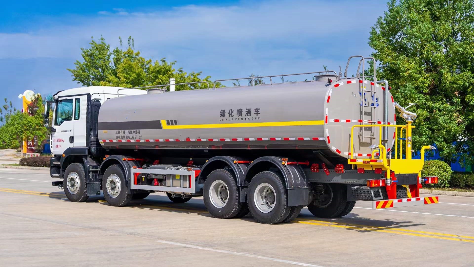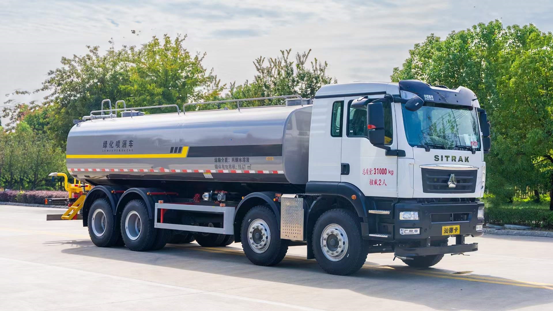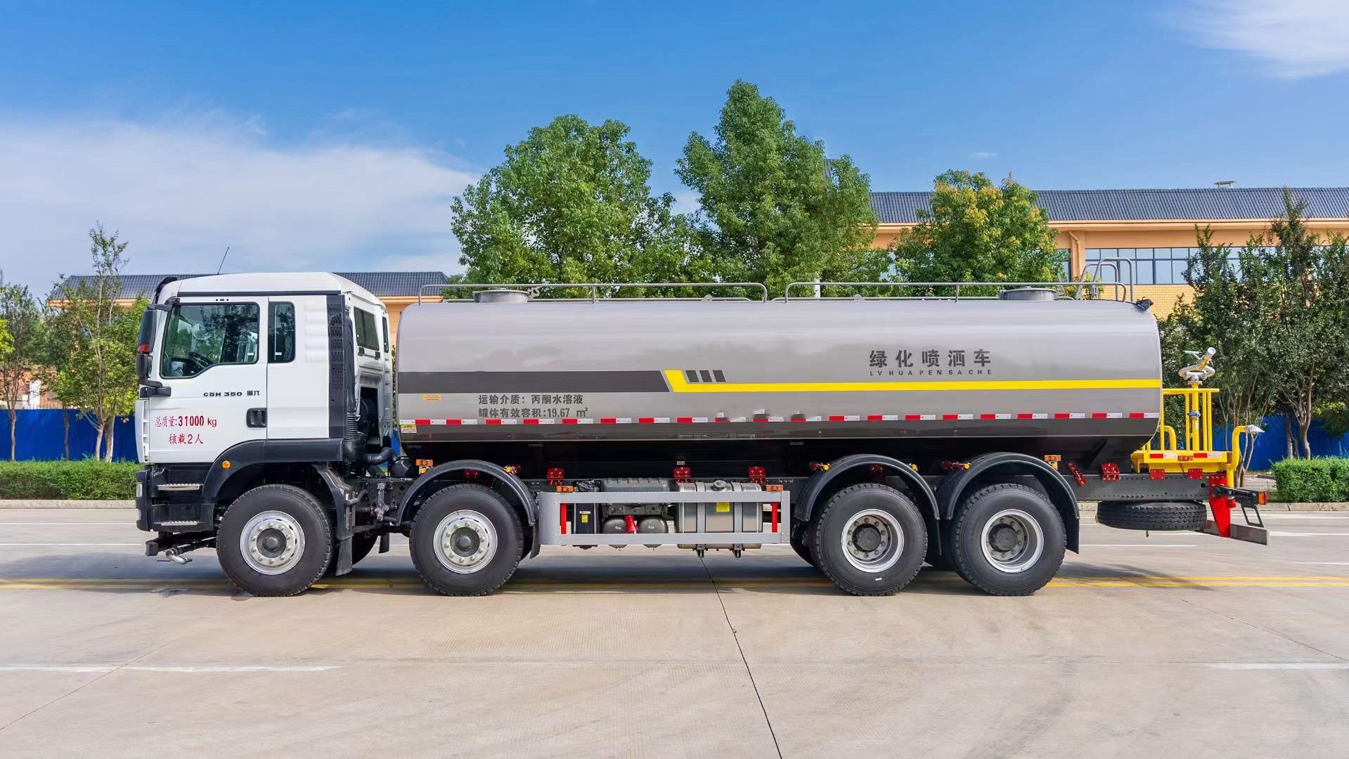 汕德卡前四后八灑水車適合于各種路面,樹木、綠化帶、道路、廠礦企業施工建設,也適合高空建筑沖洗。
