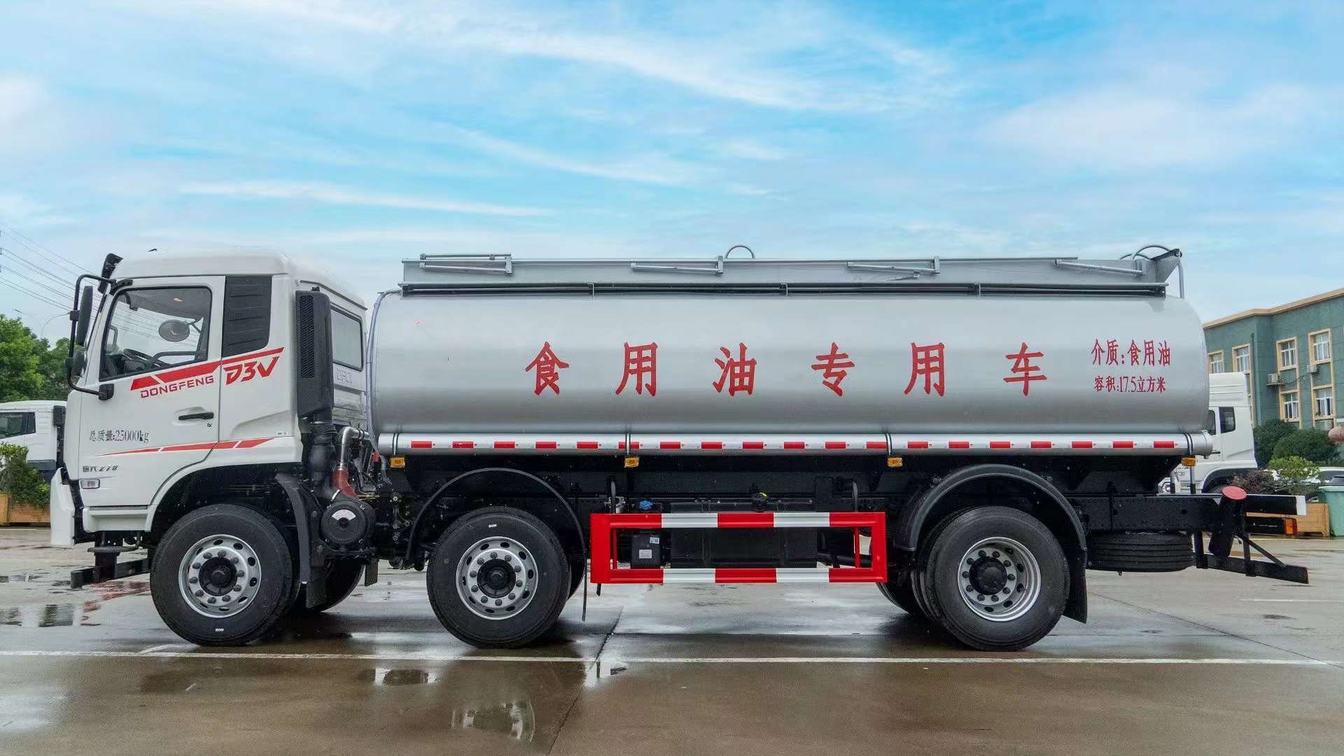 東風20立方國六食用油運輸車整車外形尺寸mm:9350×2550×3200,罐休尺寸mm: 6300×2450×1520,總質量kg:25000,額定載質量kg:15005,整備質量kg:9800,公告容積:19.5立方,介質:食用油