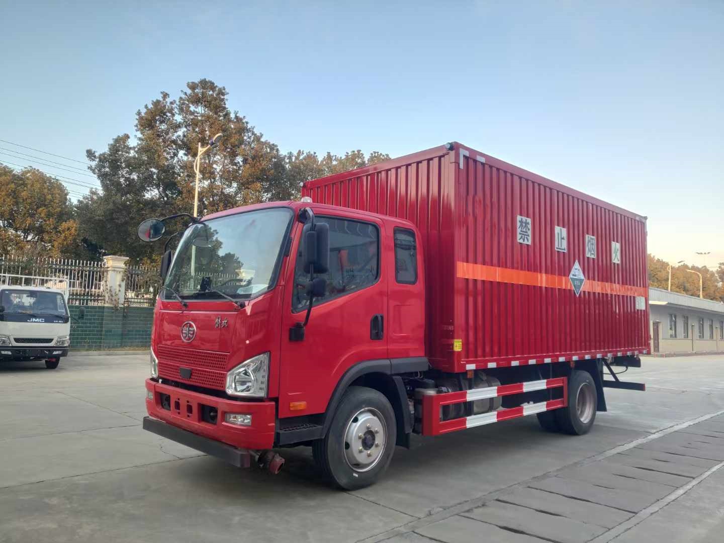 解放J6F國六危險品車可選單排及排半駕駛室,箱體尺寸多種可做。尾部可加裝液壓尾板,顏色可多選,讓您用車更無憂!