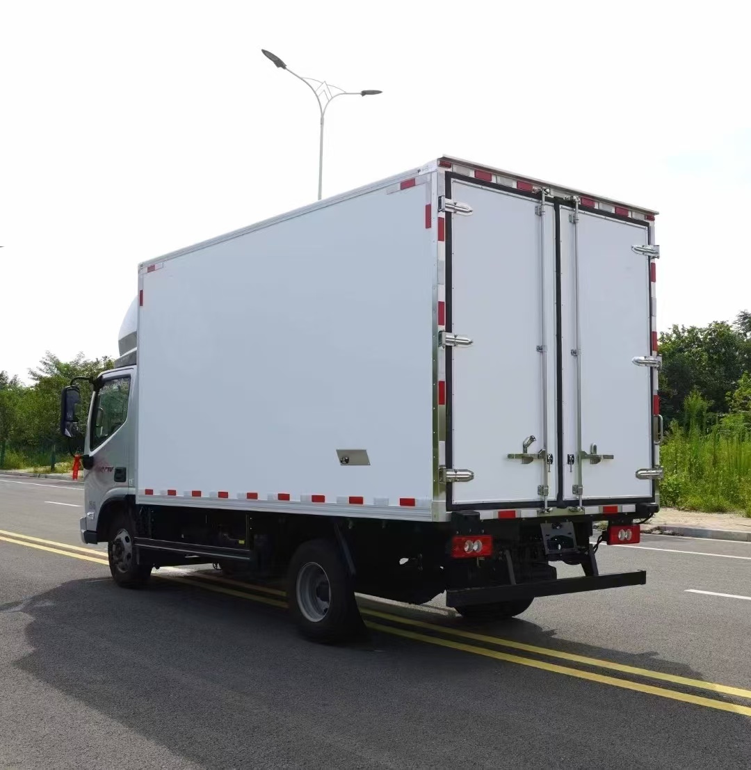 福田奧鈴CTV寬體4米2國六冷藏車箱體采用的是新式的工藝,里面裝有保溫隔板。可運輸海鮮魚蝦類水產、日常生活蔬菜水果類、豬牛羊肉等肉類食品、鮮奶冷飲等食品運輸。該車設備可加裝肉鉤直軌、屠宰場對接式導軌、備電系統、雙溫隔溫帶電子扇。