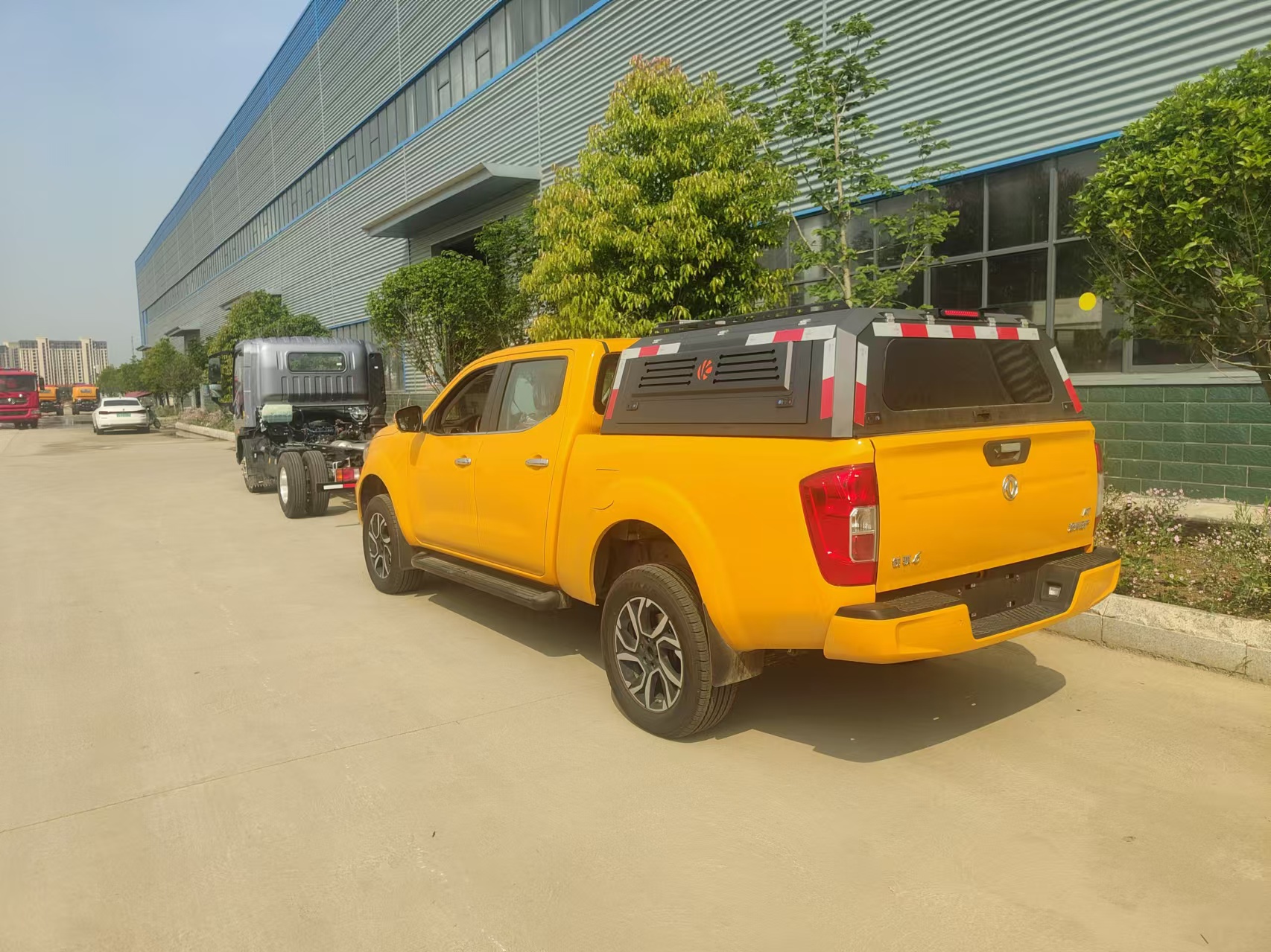 日產皮卡國六裝備車整車型號:CL5030XZB6ABZ裝備車,底盤型號:ZN1038UCM6X。選用的是柴油的發動機,四驅動力,8檔變速箱,3400mm軸距,外形尺寸5552*1850*1835mm,255/60R18輪胎規格。3人座駕駛室,貨箱選用的專用定制型樣式,貨箱內部工具可多選,該車可應用多種用途,具體如下:1. 在工程作業方面,可運載工程工具如發電機、電焊機、電鉆等,還能將建筑材料,像木材、鋼材運輸到作業場地。在電力、通信行業用于運輸設備去維修、安裝現場,如電線桿、電纜盤、通信基站設備。