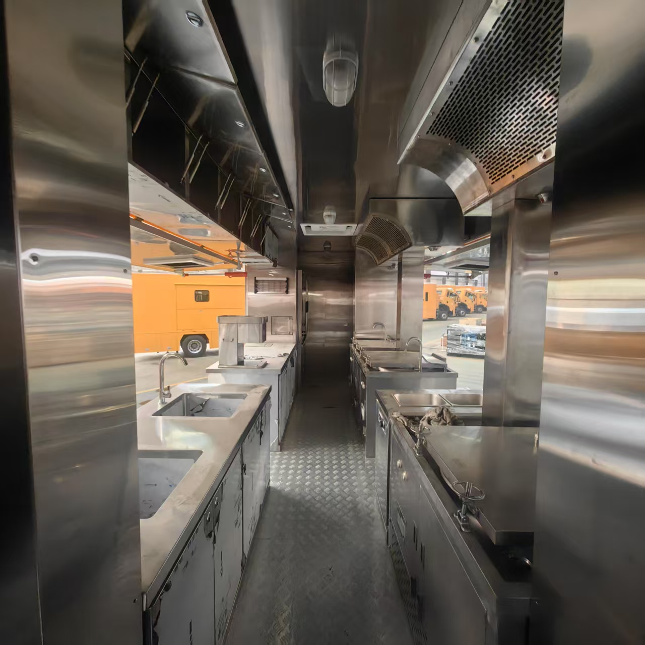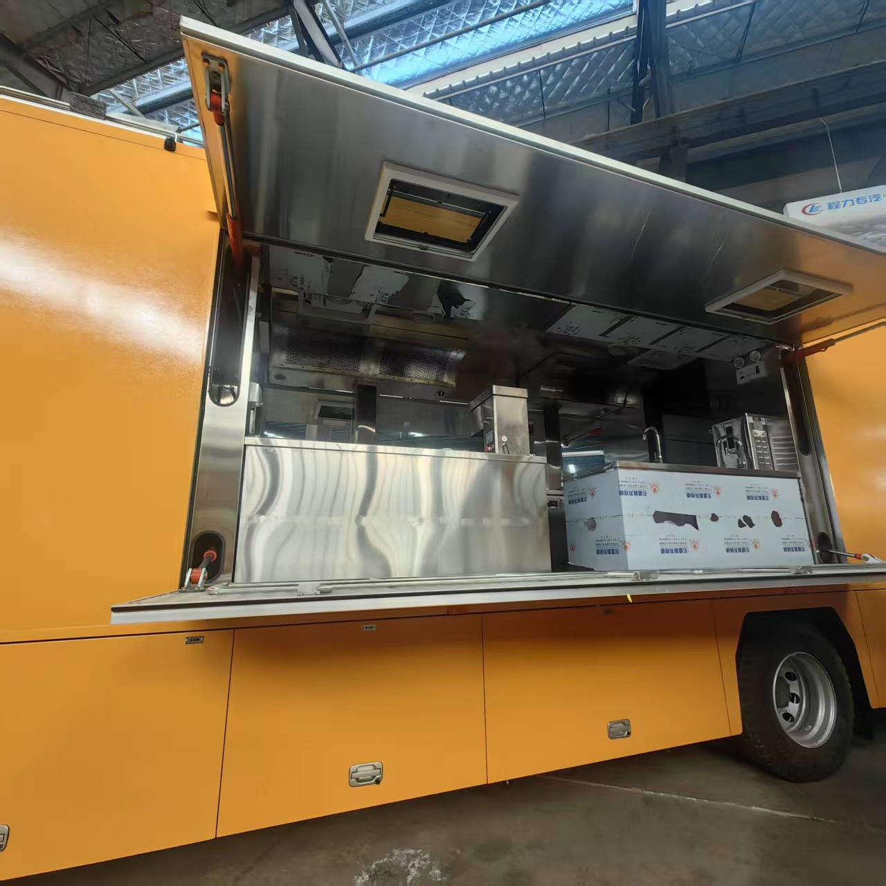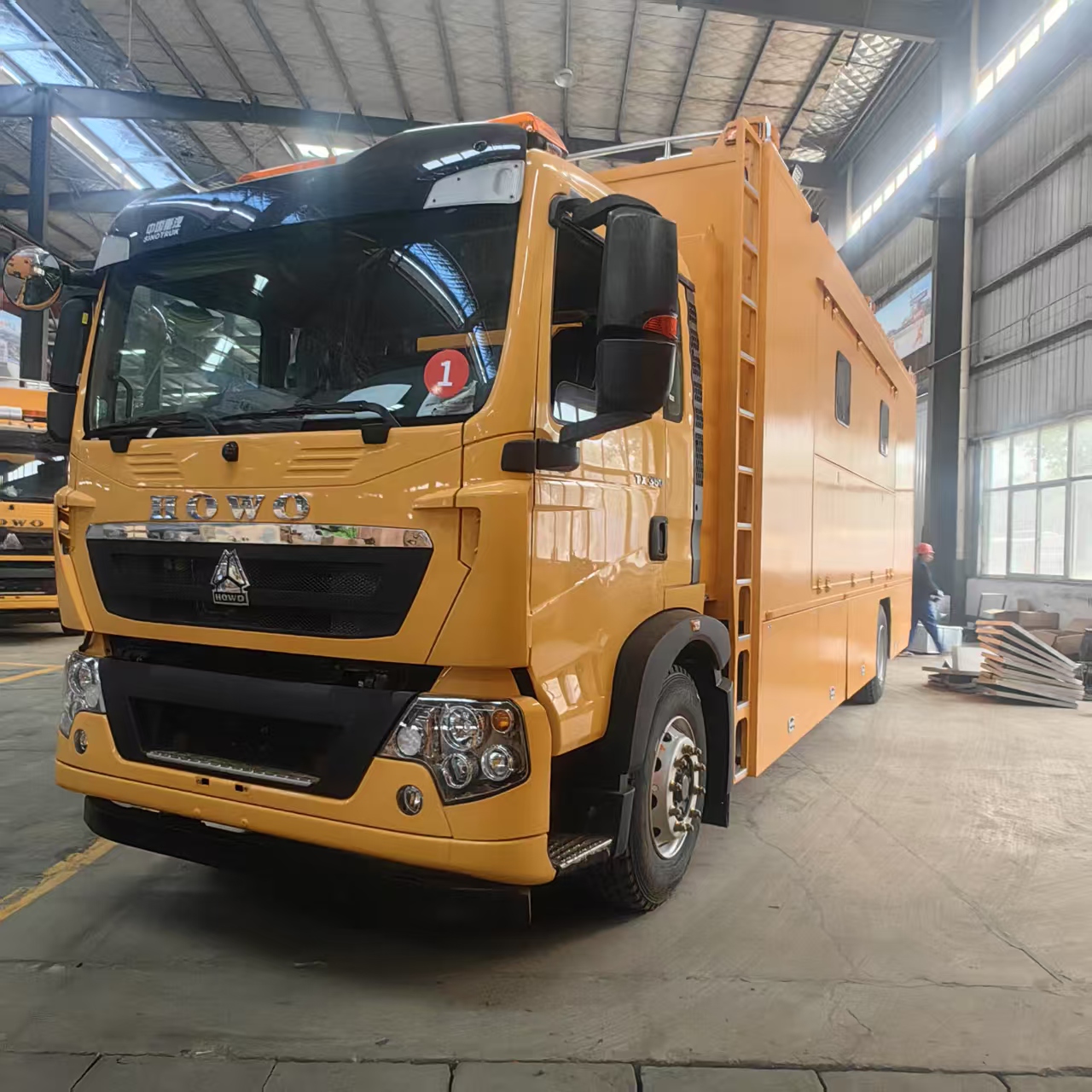 重汽豪沃國六炊事車選用的是我司專用的工程車底盤,箱體后部制作采用的是三明治保溫箱體,內部配備的是燃油高溫灶具、蒸飯柜、不銹鋼櫥柜,帶大功率抽煙系統、供電系統、水路系統和儲物架。在野外作業條件下,可同事容耐200人提供飲食和開水,并能夠一次攜帶200L凈水,內部各種設施進行合理的布置并進行固定裝置。具有獨立的供電系統,能夠給所有的設備提供安全供電。