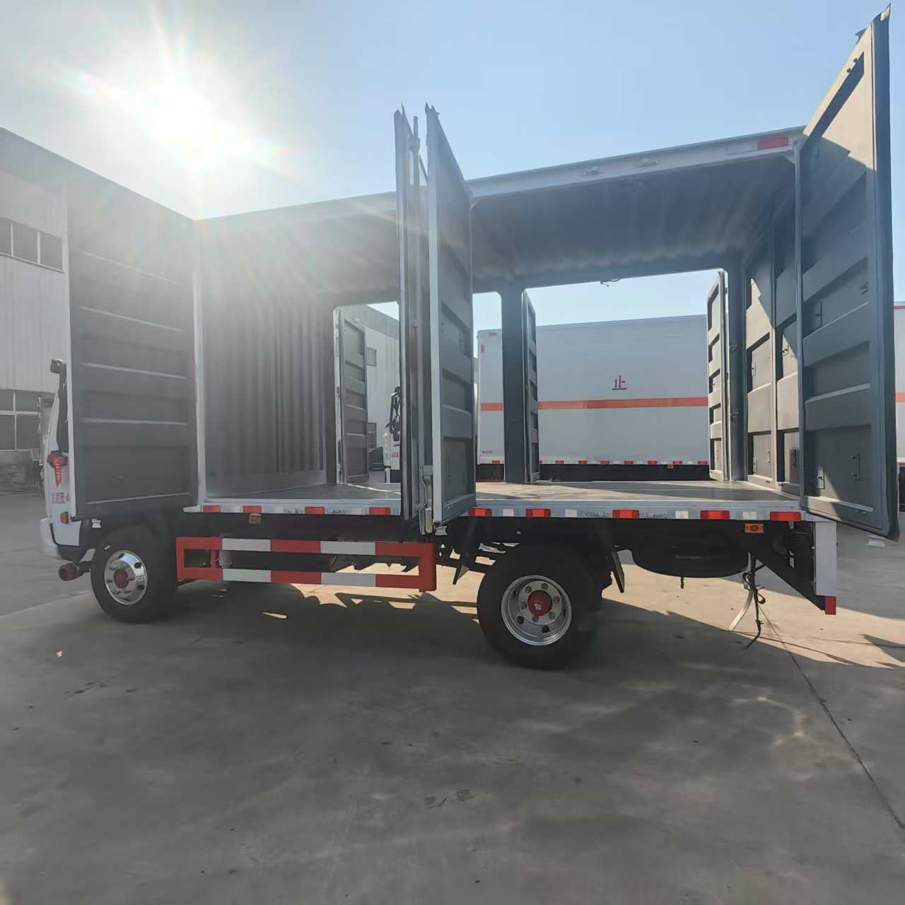 東風(fēng)多利卡藍牌全開門危險品車選用的是危化品專用底盤,可選全柴136馬力發(fā)動機或玉柴140馬力發(fā)動機,匹配中控鎖、電動門窗、原廠空調(diào)。齊全的配置,豪華的內(nèi)飾,給您不一樣的體驗感。箱體左右各帶兩扇門,方便開啟