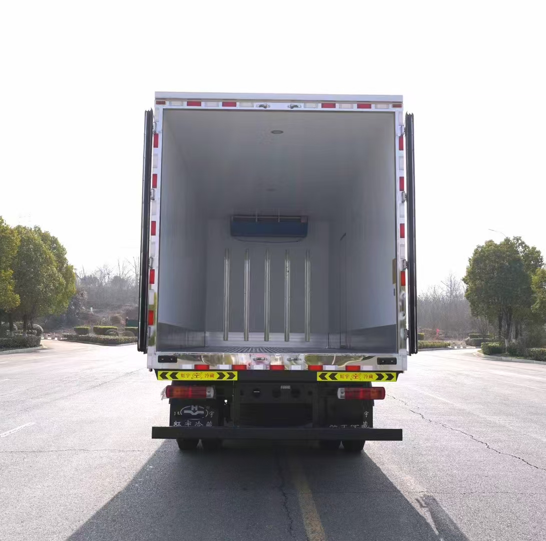 解放J6國六G360馬力7米7冷藏車箱體冷藏車生產工藝,箱體采用的是專用工藝,外冷軋板內鋁板,中間夾保溫材料。外玻璃鋼顏色選用的是中通紫,箱內左右前后板鋁板,頂板白色玻璃鋼板。底板采用的是下沉式滿焊通風槽,4個排水口,夾冷鏈保溫層。箱體內部可選裝帶肉鉤、導軌、溫濕度監控儀。