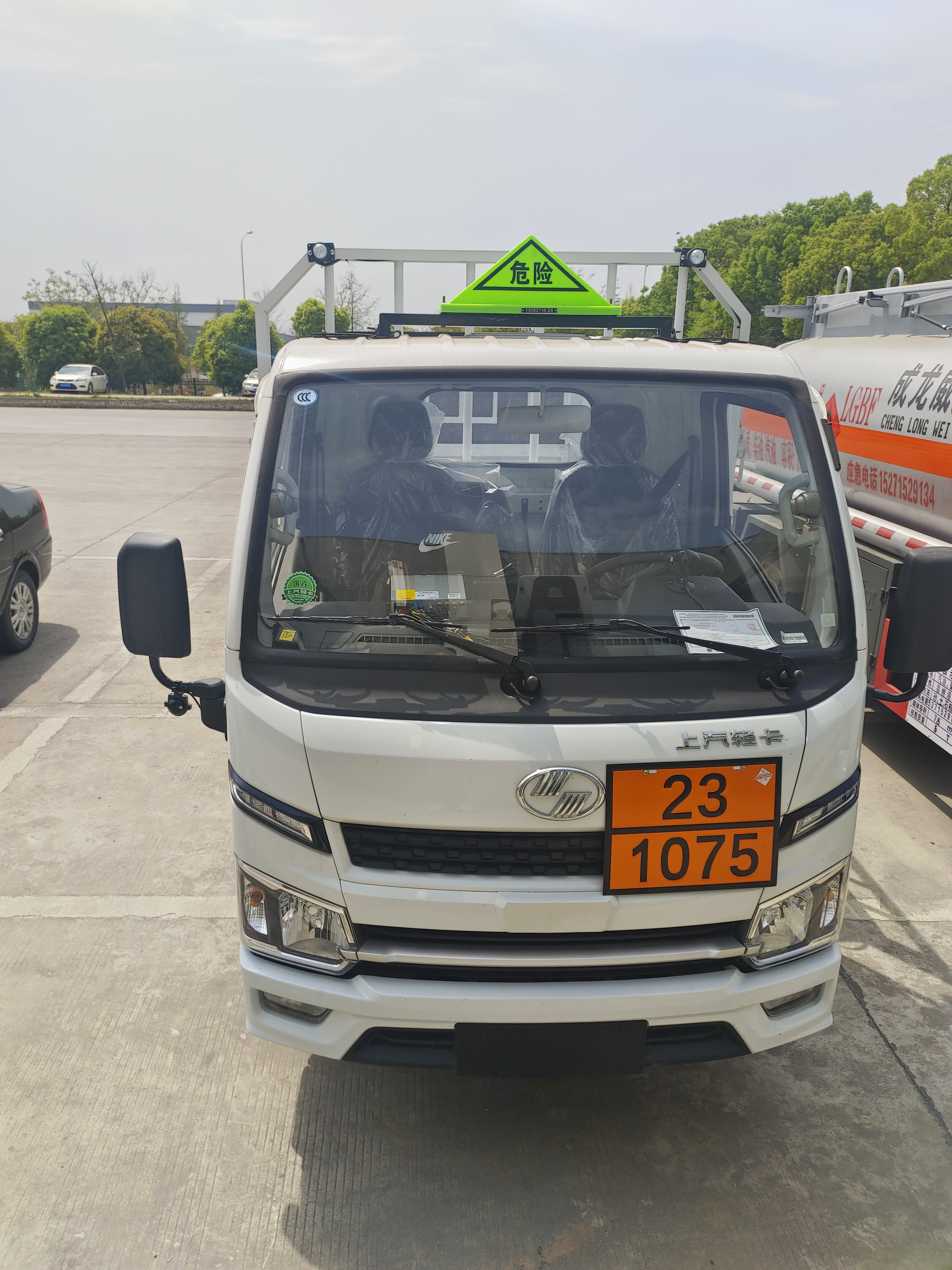 上汽躍進S80氣瓶運輸車選用的是危化品專用底盤,全柴95馬力發動機,2.3L排量, 蒙沃5擋變速箱,185R15 8PR后雙真空胎,50L油箱,3t后橋,3/4+5雙層板簧,油剎,方向助力,原廠空調。整車型號:SH5043TQPPEDBNZ