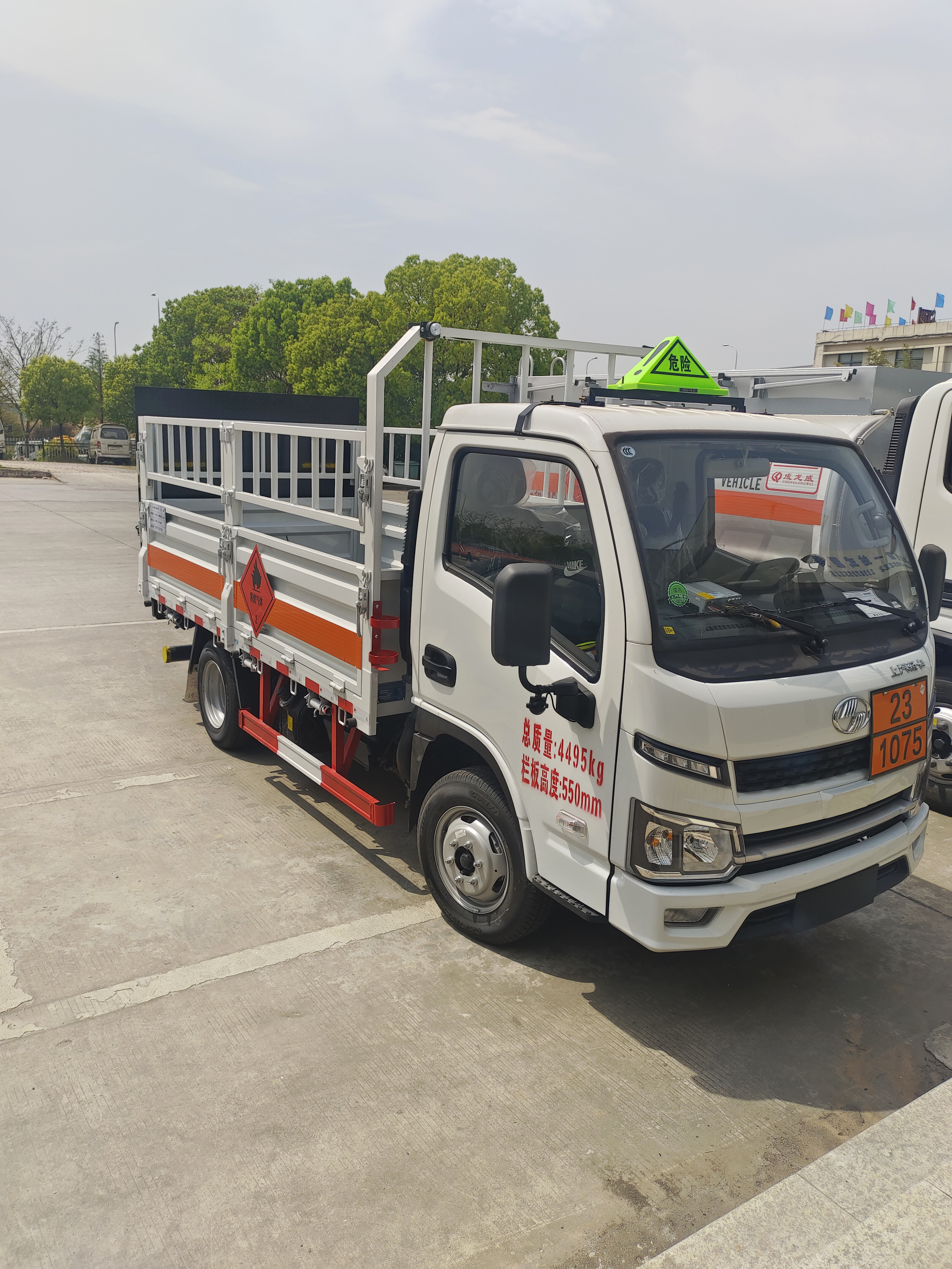 額定載質量:1995,1800(Kg),貨箱長度:3360,3650,4050(mm)。重點是貨箱根據危險品車要求進行定制,采用的是可拆卸花欄結構,側面邊板都可以開啟,裝貨方便。