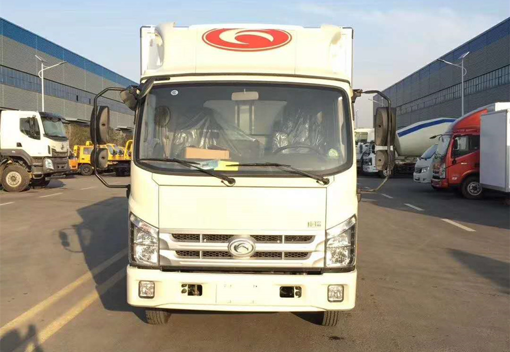 貨箱頂部封閉,不可開啟,可選裝后視鏡風格及前圍logo,可選裝液壓升降尾板,液壓尾板收起狀態的水平長度為300mm,可選裝同等功率制冷機組,可選裝導流罩,可選裝側單開門風格貨廂,可選裝無側開門風格貨廂.側防護材料為冷板B-2.0-GB/T708,后防護材料為異形管20-D-1-100×50×3,連接方式均為螺栓連接,后下部防護斷面尺寸100mm×50mm,離地高度480mm.ABS系統控制方式是4S/4M,ABS系統控制器型號是CM4XL-4S/4M,ABS系統控制器生產企業是廣州瑞立科密汽車電子股份有限公司.僅選用發動機ISF2.8s5129T,4B2-115C50,YN38CRE1,4J28TC3,CY4BK551,對應的油耗值分別為12.2,12.2,12.3,12.3,12.1.最高車速120km/h對應的發動機:ISF2.8s5129T.最高車速90km/h對應的發動機:4B2-115C50,YN38CRE1,4J28TC3,CY4BK551.
