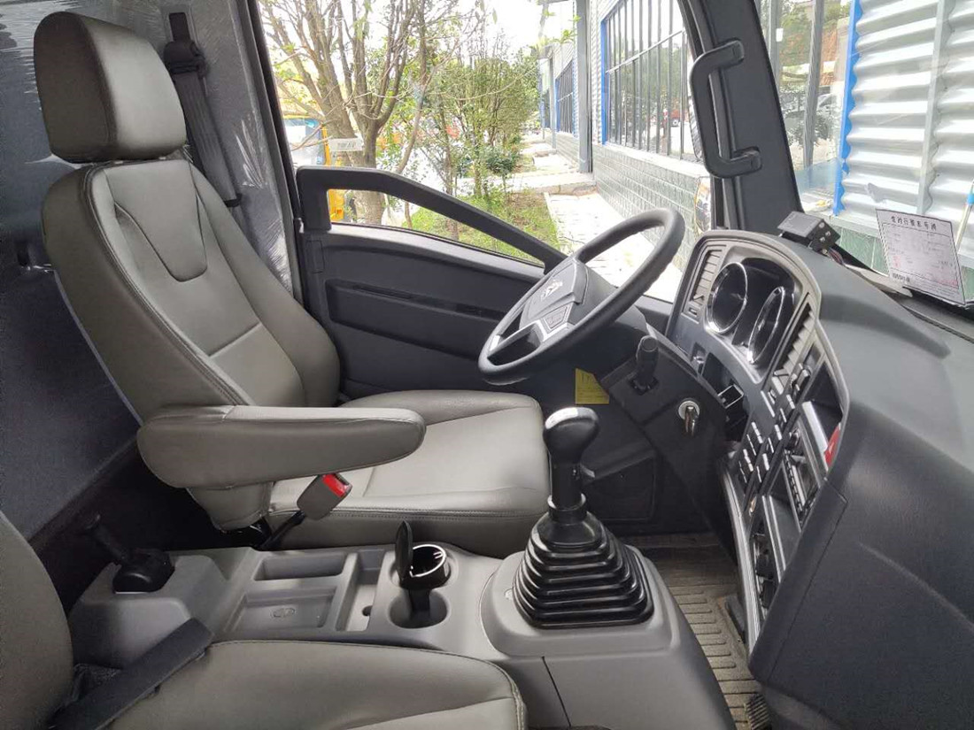 底盤配置:2.1米寬單排駕駛室,6噸后橋,小八檔變速箱(高低檔),7.50R16鋼絲胎,空調,中控門鎖,電動門窗,遙控鑰匙,多功能方向盤。