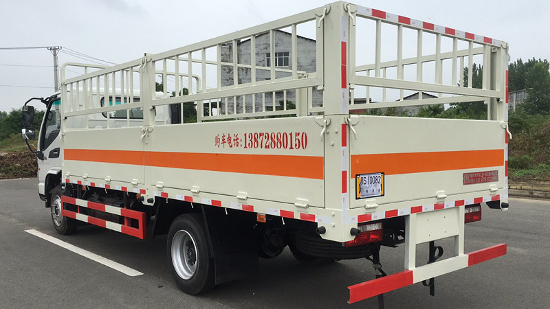 江淮駿鈴高欄式氣瓶運輸車,它是根據國家有關部委對易燃氣體鋼瓶運輸的規范和用戶的要求而研制生產,產品符合國防科工委關于《氣瓶運輸車安全技術條件》的要求.具有廂體強度高、防火阻燃、防止靜電火花等主要功能.專業運輸各類氣體介質瓶裝轉運,如:液化石油氣瓶運輸車、鋼瓶配送車、煤氣瓶轉運車、氧氣瓶、二氧化碳氣瓶等。