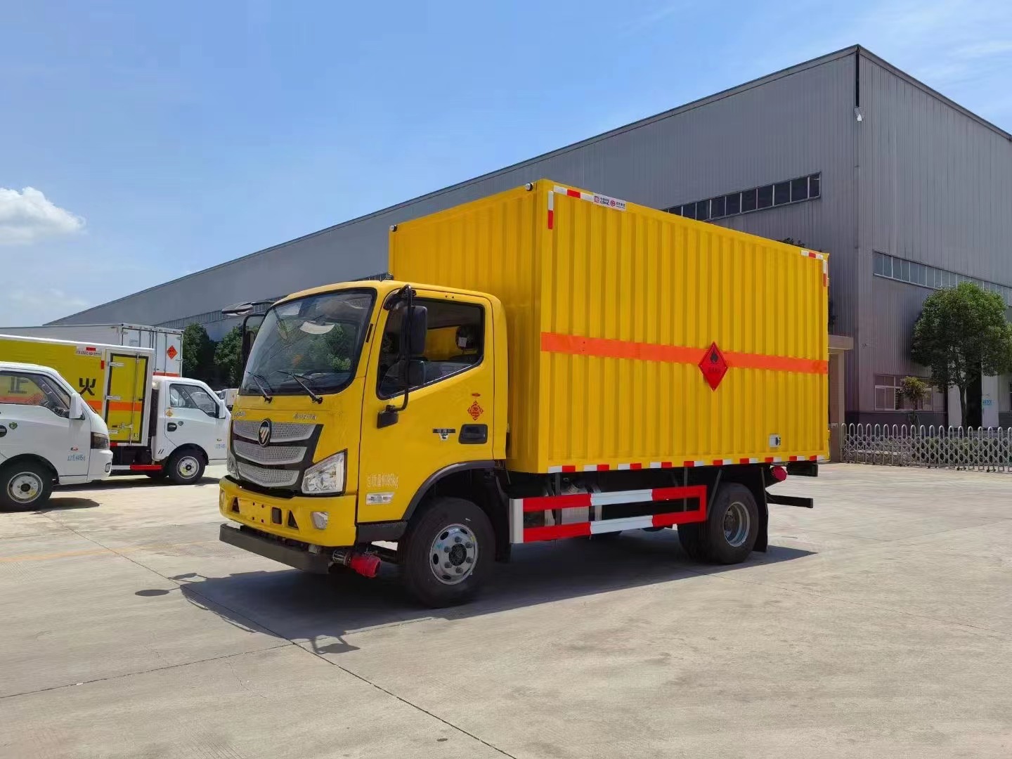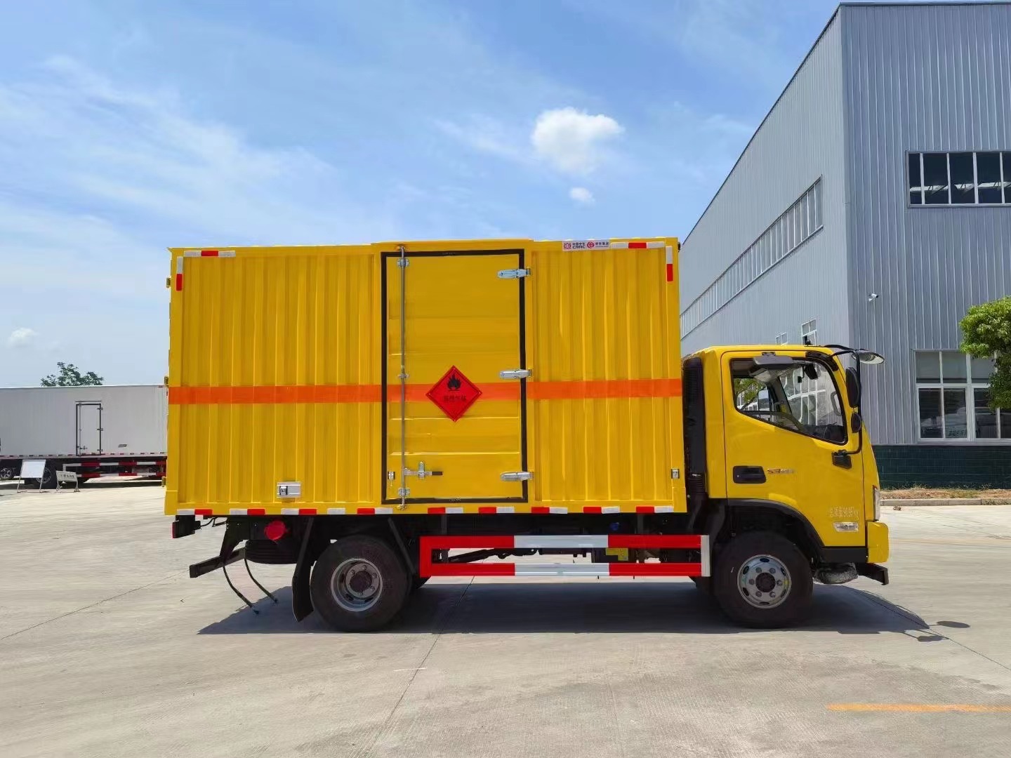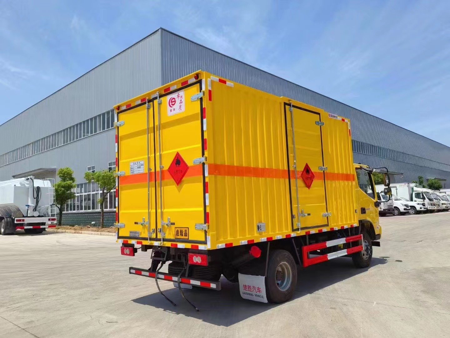 1,復合板工藝:嚴格按照公告尺寸制作。外板采用優質烤漆板(顏色可選:白,灰,檸檬黃)帶百葉窗,內飾為導電性能良好的鋁平板有透氣孔,矩形骨架結構內部填充防火阻燃材料,復合加鉚合工藝。廂體四周鋁合金包邊及包角,車廂底板鋪設防靜電膠皮,廂體前臉50公分高鋪設防靜電膠皮。后部設置對開門,右側單開門,廂體內部兩側安裝捆綁貨物的臥環。廂體內部安裝煙霧報**器,門上安裝防盜報**器。車廂一周粘貼橙色反光帶,箱體粘貼菱形標志牌,安全告示牌,危險品牌,箱體安裝示廓燈(前白后紅),拖地靜電帶。