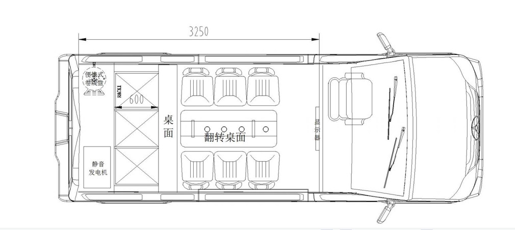 我公司生產的上汽大通通信指揮車基于大通SH6591A2DB底盤改裝,該底盤變速箱為手自一體變速箱,最高車速150km/h,發動機型號為SC20M139Q6,發動機排量:1996ml,排放國VI標準。通信指揮車以大通SH6591A2DB底盤作為改裝平臺,保證工作人員擁有寬敞舒適的工作環境,并且為系統的運行和維護提供符合技術要求的環境條件。在保持整車優良性能的前提下對車輛進行改裝而成,實現符合用戶使用要求的工作環境、使用功能而量身定制的特種專用車輛。通信指揮車具備通信組網功能和指揮通信與情報信息采集功能。通過高清晰、低照度車載云臺攝像機,可實現全天候、多方位、大范圍的現場監控功能。通過車載硬盤錄像機,可以對現場的情況進行適時錄像、錄音記錄,以便日后進行調查,并可通過USB接口及數據端口與其他存儲設備相連接,進行現場刻錄,便于錄像資料的及時、有效保存。車載液晶電視可集中顯示系統采集到的信息,便于領導實時掌握事發現場的各種情況,可以及時指揮調度,正確決策。