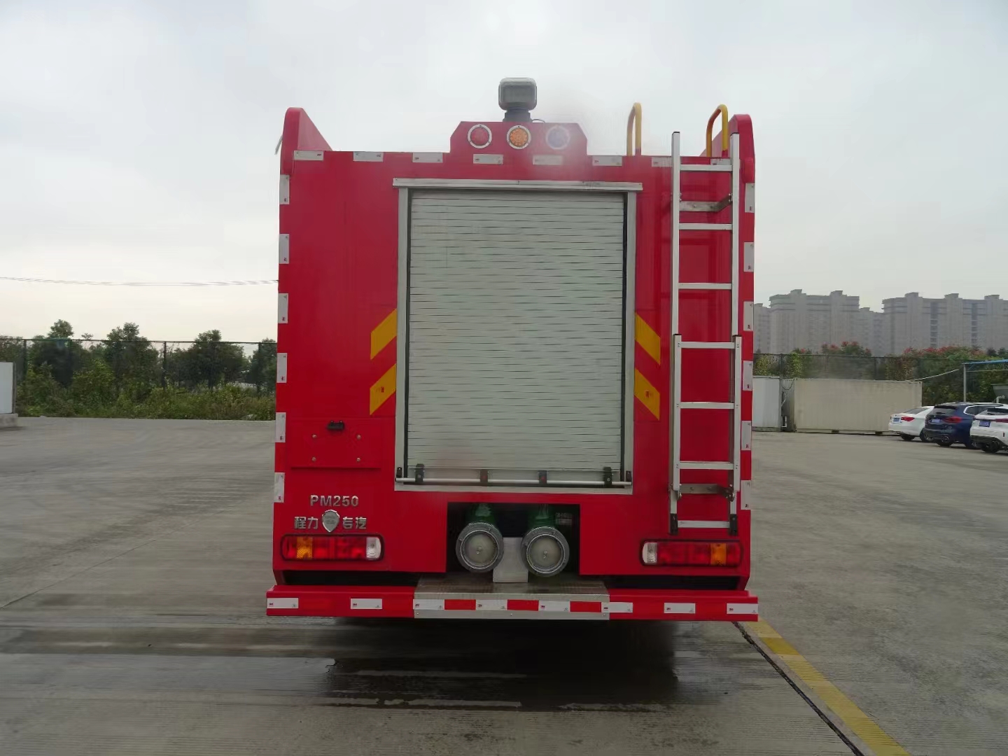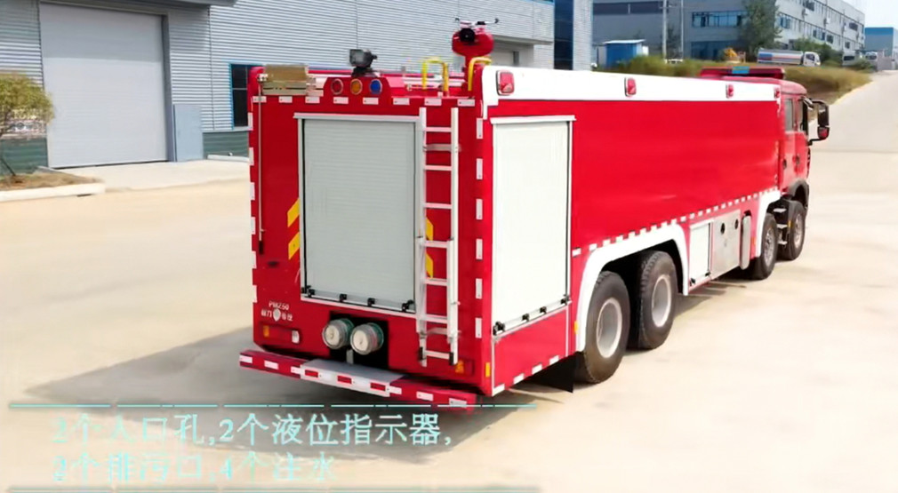 重汽豪沃前四后八國六水罐、泡沫消防車采用框架焊接,罐體內(nèi)設(shè)置縱、橫防蕩板,以減少車輛行駛過程 中罐內(nèi)水對罐體的沖擊;罐體前后壁板折有梯形折筋,使罐體具有足夠的強度、 剛度。罐頂設(shè)快速開啟式人孔,方便維修人員進出。罐內(nèi)設(shè)有防止水泵吸水形成旋 渦從而影響流量的裝置和濾網(wǎng)。罐內(nèi)設(shè)有不銹鋼浮球式液位指示器,可通過儀表板上液位表顯示罐內(nèi)滅火劑 的容量;罐底設(shè)有帶球閥的排污口。罐體設(shè)有 2 個 76mm 溢流管,車廂兩邊各 2 個 76mm 注入口,便于其他車輛供 水加液之用。