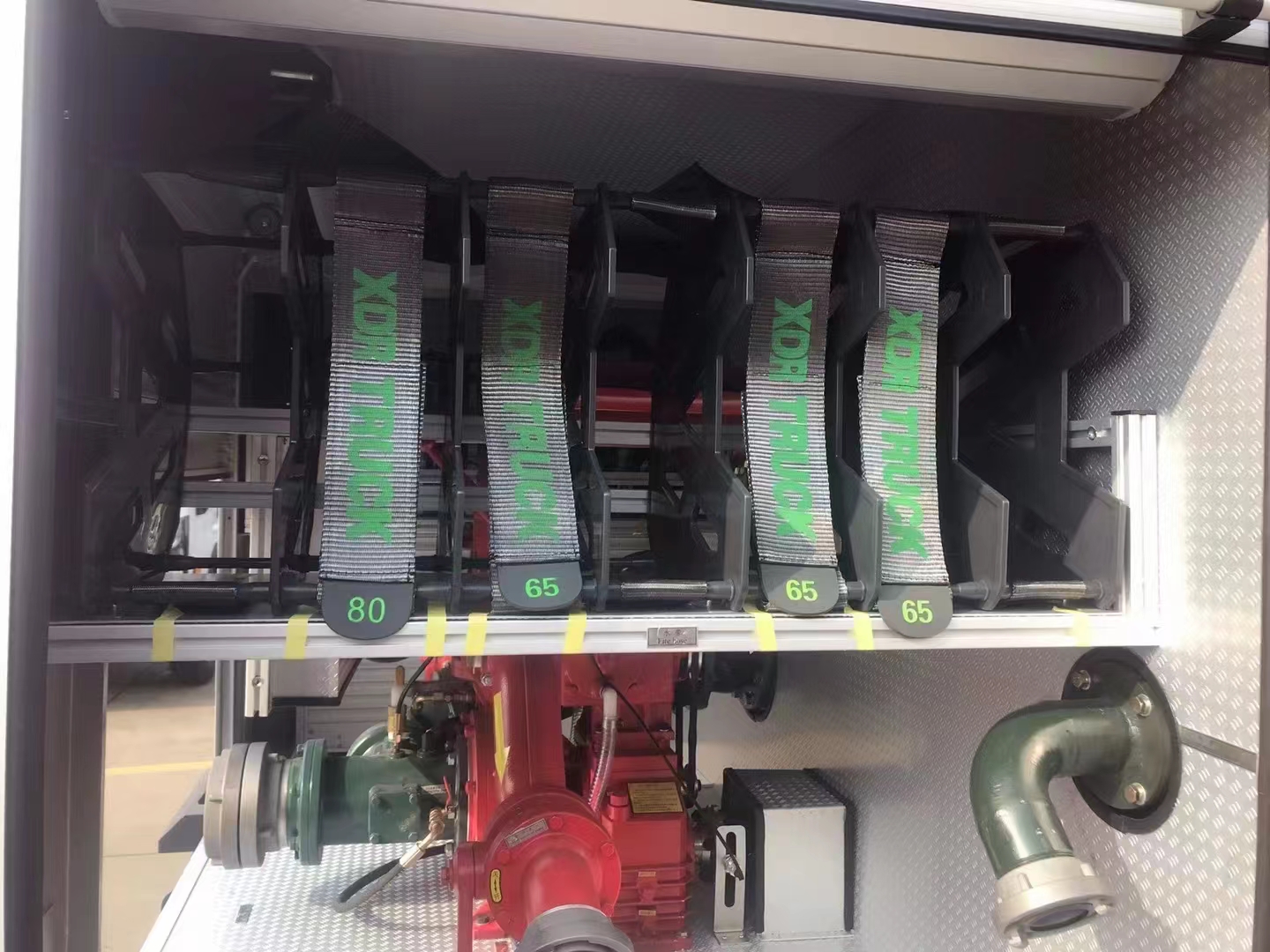 罐體設有1個76mm溢流管,車廂兩邊各1個76mm注入口,便于其他車輛供水加液之用。